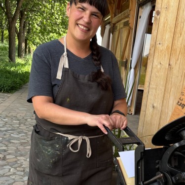 Her studio is in Cochrane Alberta, she is a member of the Canadian Letterpress Alliance, Leighton Artist Centre and Alberta Printmakers